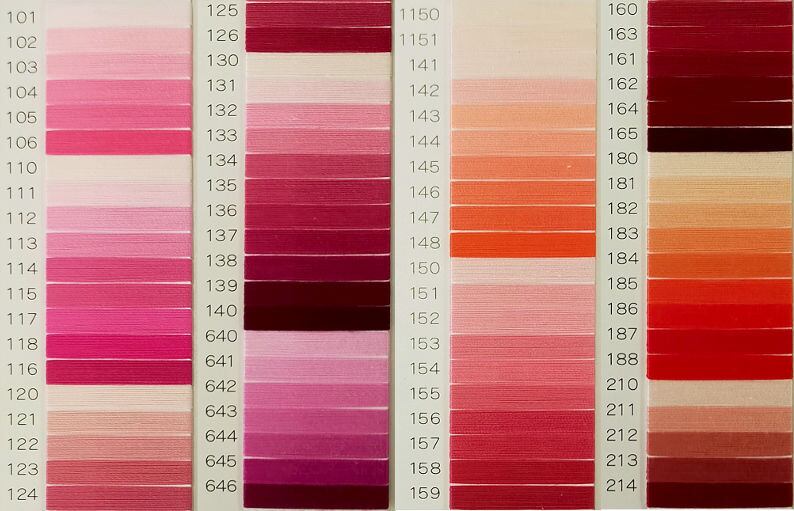 ※当ページは20番/1,000m、見本帳1列・2列のカラー(ピンク・赤系)の販売ページです。他のカラーは対象ページにてご購入をお願いいたします。