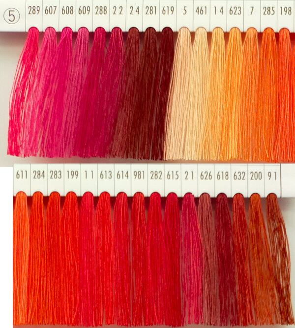 ※写真は60番手ですが、糸の色番は共通です。80番手はボビンの色がグリーンになります。