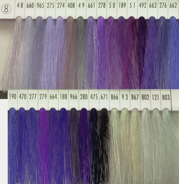 ※写真は60番手ですが、糸の色番は共通です。80番手はボビンの色がグリーンになります。