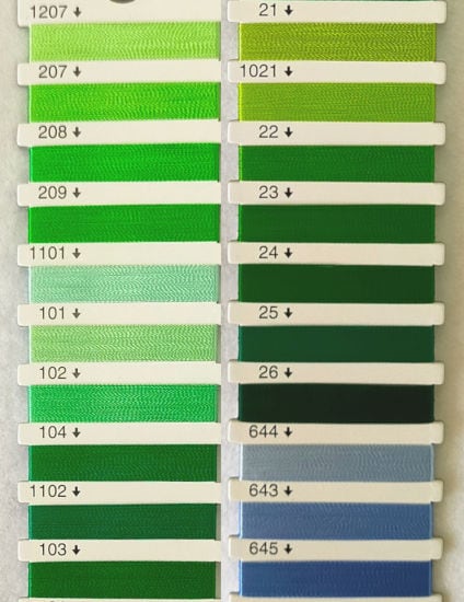 120d/2よりも細めなので、細かい柄や細字のネーム刺繍に向いています。
