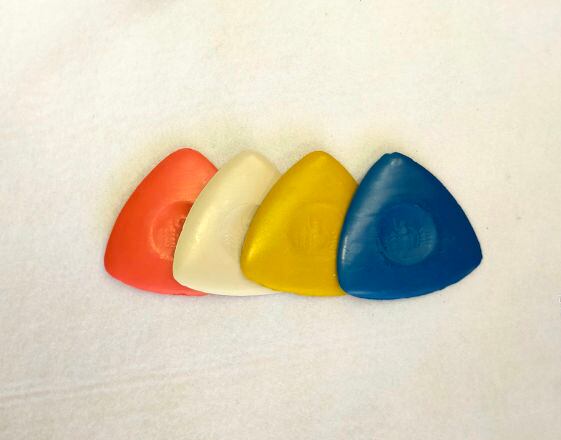 昔ながらの超定番・三角形のチャコ。生地すべりしにくく、きれいに印を描けます。
